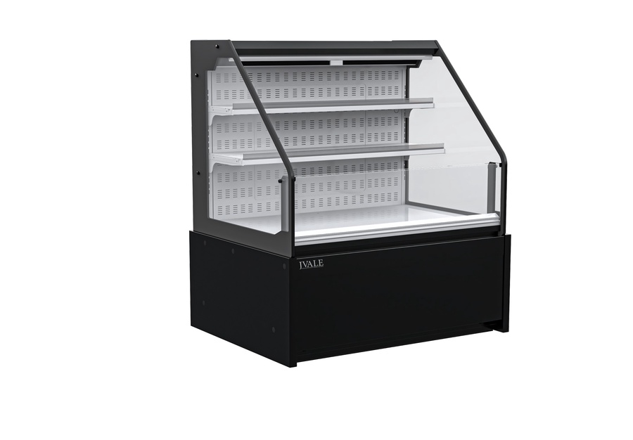 يتميز تصميمها الزجاجي المائل برؤية مثالية للمنتجات، بينما توفر الرفوف المتعددة إمكانية عرض منظم ومتعدد المستويات للحلويات أو منتجات الألبان