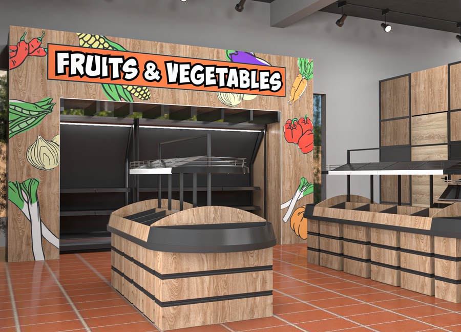 يتميز التصميم بسهولة التنظيف والصيانة ويُعد خيارًا عمليًا لأقسام المنتجات الطازجة في تجهيزات سوبر ماركت