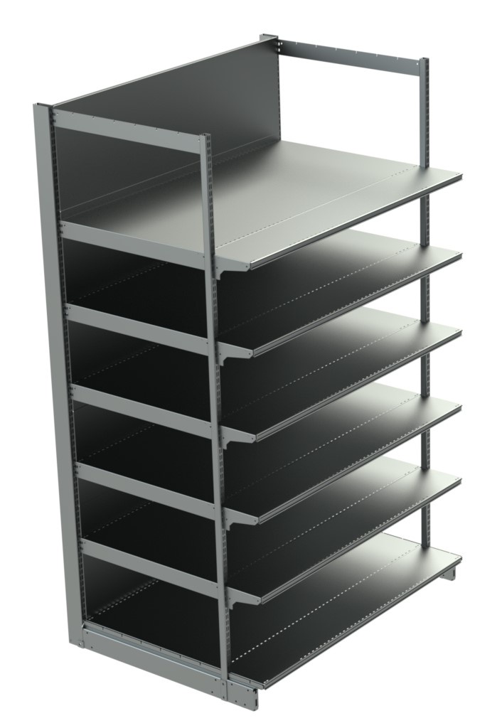 يأتي بتصميم رأسي متين يحتوي على ست طوابق عرض معدنية عريضة تتحمل الأوزان الثقيلة وتوفر رؤية واضحة للمنتجات مما يعزز من جاذبية العرض ويُسهل على العملاء الوصول إليها