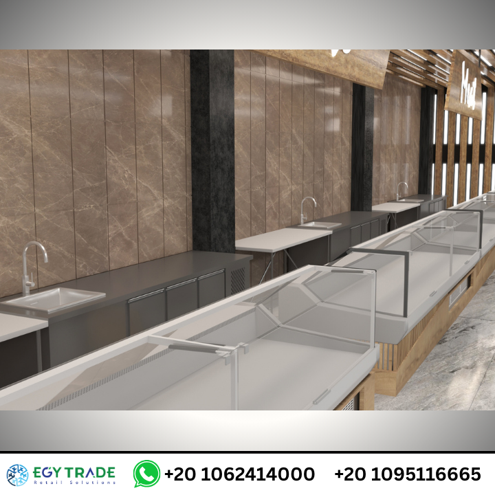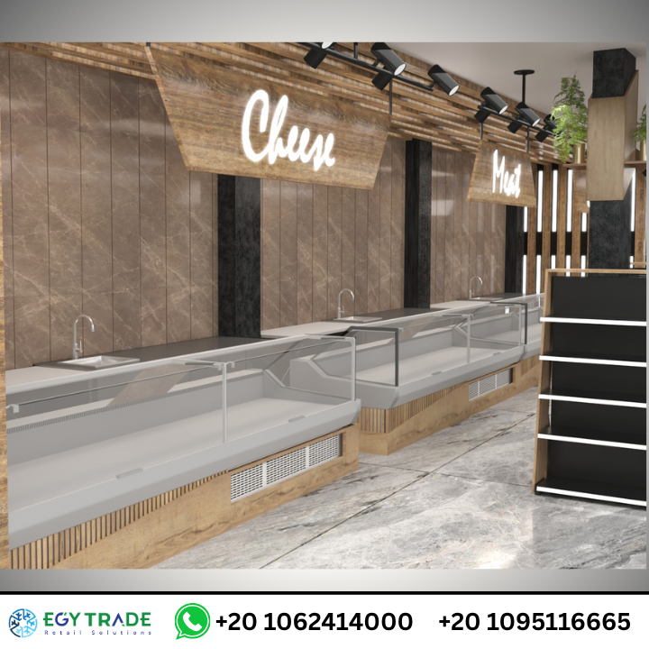 القسم يظهر في الصور عبر ثلاجات عرض أمامية مخصصة للّحوم المبردة والجبن، مع: