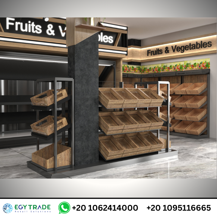 - صناديق خشبية مائلة لراحة اختيار المنتجات.