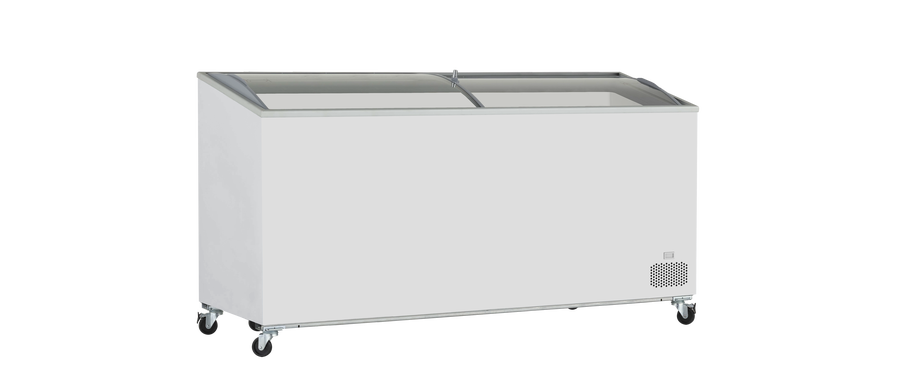 يتميز الفريزر بغطاء زجاجي منحني مزدوج منزلق يتيح رؤية أوضح للمنتجات ويقلل من فقدان البرودة، مما يجعله خيارًا مثاليًا لعرض الآيس كريم، اللحوم، والخضروات المجمدة.