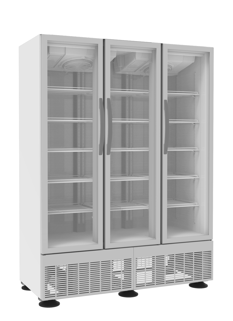 تتميز الثلاجة بثلاثة أبواب زجاجية شفافة تتيح رؤية كاملة للمنتجات دون الحاجة إلى الفتح المتكرر، مما يساعد في الحفاظ على استقرار درجة الحرارة وتقليل استهلاك الطاقة