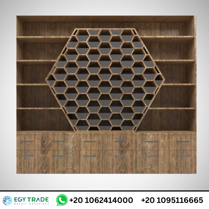 هذه الوحدة الخشبية ذات التصميم السداسي المبتكر تُعد واحدة من أهم حلول العرض التي تعتمد عليها أي شركة تجهيز سوبر ماركت صغير لتجهيز المساحات بكفاءة وتنظيم.